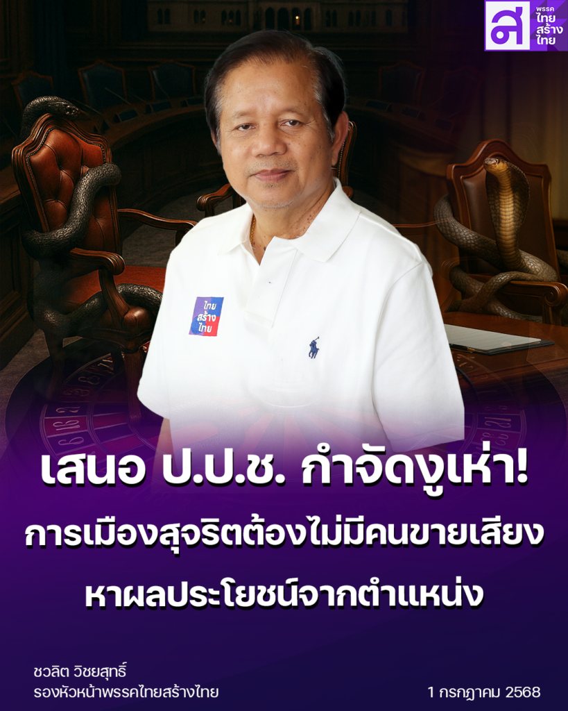 ทั้งนี้ พรรคไทยสร้างไทยจะประสานงานกับ ป.ป.ช. อย่างใกล้ชิด