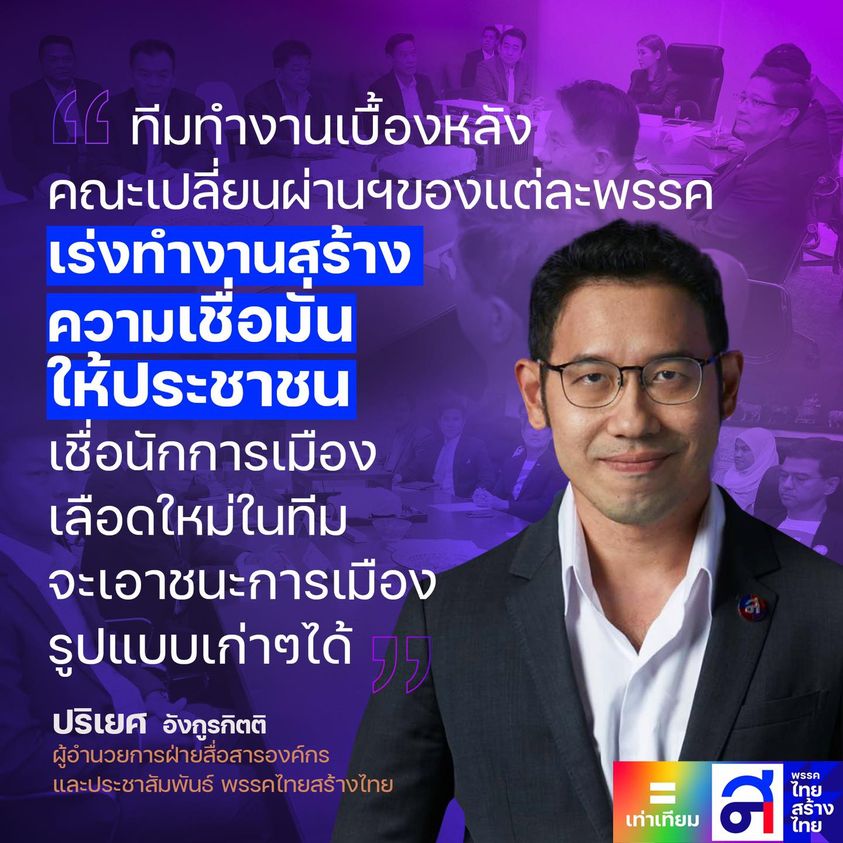 “ปริเยศ” ไทยสร้างไทย กระตุ้น ทีมทำงานเบื้องหลังคณะเปลี่ยนผ่านฯของแต่ละพรรคเร่งทำงาน สร้างความเชื่อมั่นให้ประชาชน เชื่อนักการเมืองเลือดใหม่ในทีมจะเอาชนะการเมืองรูปแบบเก่าๆได้