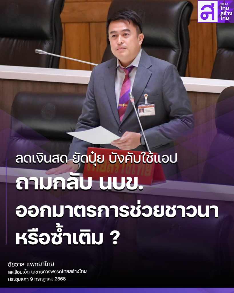 ลดเงินสด ยัดปุ๋ย บังคับใช้แอป – ชัชวาล ไทยสร้างไทย ถามกลับ นบข. ออกมาตรการช่วยชาวนา หรือซ้ำเติม?