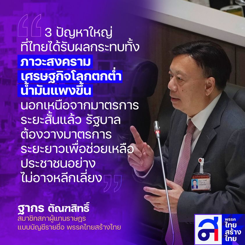วันนี้ “สส.ฐากร ตันทสิทธิ์” ได้อภิปรายถึงสถานการณ์วิกฤติโลก 3 เหตุการณ์ใหญ่ที่จะกระทบถึงคนไทยทุกคนทั้งราคาน้ำมันที่พุ่งสูงขึ้น ราคาของแพง หนี้ครัวเรือนที่โตไม่หยุด และดอกเบี้ยที่แพงสุดในรอบ10ปีที่รัฐบาลต้องเตรียมมาตราการรองรับโดยด่วน