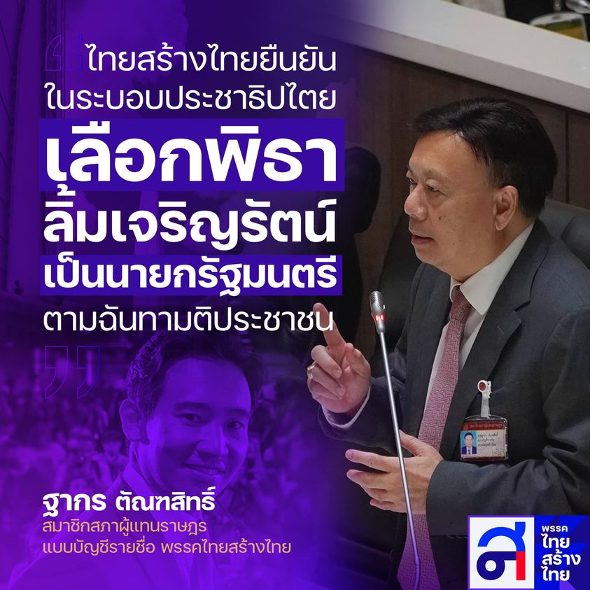 วันนี้ นายฐากร ตัณฑสิทธิ์ ส.ส.แบบบัญชีรายชื่อ พรรคไทยสร้างไทย ร่วมอภิปรายสนับสนุนพิธา ลิ้มเจริญรัตน์ หัวหน้าพรรคก้าวไกล ในฐานะผู้ถูกเสนอชื่อเป็นแคนดิเดตนายกรัฐมนตรี ในการประชุมร่วมกันของรัฐสภา ครั้งที่ 1 (สมัยสามัญประจำปีครั้งที่ 1) วาระโหวตเลือกผู้สมควรได้รับแต่งตั้งเป็นนายกรัฐมนตรี