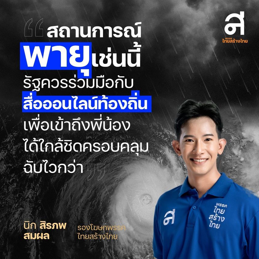 ไทยสร้างไทย แนะ รัฐ ขอความร่วมมือ สื่อออนไลน์ ที่น่าเชื่อถือ ช่วยแจ้งเตือน สถานการณ์อุทกภัย