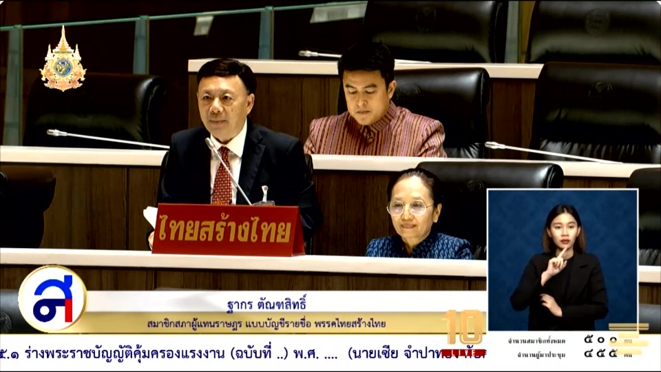 นายฐากร ตัณฑสิทธิ์ สส.บัญชีรายชื่อ พรรคไทยสร้างไทย อภิปรายสนับสนุน ร่างพระราชบัญญัติคุ้มครองแรงงาน ทั้ง 3 ฉบับที่เสนอโดยพรรคก้าวไกลและพรรคภูมิใจไทย โดยศึกษาแล้วเห็นว่ามีข้อดีมากกว่าข้อเสีย จึงอยากให้สภาผู้แทนราษฎรมีความสมานฉันท์ และนำร่างไปปรับแก้ไขในชั้นกรรมาธิการ เพื่อช่วยยกระดับแรงงาน ให้เกิดขึ้นได้จริง