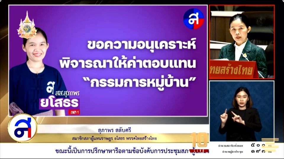 นางสุภาพร สลับศรี สส.ยโสธร พรรคไทยสร้างไทย อภิปรายหารือความเดือดร้อนให้พี่น้องประชาชนต่อ สภาผู้แทนราษฎร โดยขอให้หน่วยงานที่เกี่ยวข้องพิจารณาปรับปรุงโรงอาหารของโรงเรียนป่าติ้ววิทยา จังหวัดยโสธร เป็นโรงเรียนประจำอำเภอปัจจุบันมีนักเรียนนีกเรียน711คน มีคณะครูอาจารย์ 46คน สภาพโรงอาหาร เก่าผุพัง พยายามขอรับการจัดสรรงบประมาณทุกปี แต่ยังไม่เคยได้รับ จึงขอสื่อสารไปยังรัฐมนตรีว่าการกระทรวงศึกษาธิการ โปรดจัดสรรงบประมาณ เพื่อนำมาปรับปรุงส่งเสริมการเรียนรู้ และสามารถใช้อาคารสถานที่ได้อย่างปลอดภัย