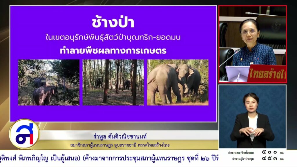นางรำพูล ตันติวณิชชานนท์ สส. อุบลราชธานี พรรคไทยสร้างไทย อภิปรายสนับสนุนญัตติ เรื่องการขอให้สภาผู้แทนราษฎรตั้งคณะกรรมาธิการวิสามัญ ติดตามผลการดำเนินงานแก้ไขปัญหา เช้าป่าและศึกษาแนวทางการแก้ไขปัญหาช้างป่าอย่างยั่งยืน โดยกล่าวว่าหลายพื้นที่ ทั่วประเทศโดยเฉพาะ ใกล้เขตพื้นที่ อุทยานหรือเขตพื้นที่รักษาพันธุ์สัตว์ป่า มักพบช้างป่า ลงมาหาอาหารรบกวนชาวบ้าน ทำให้ชาวบ้านได้รับความเดือดร้อน