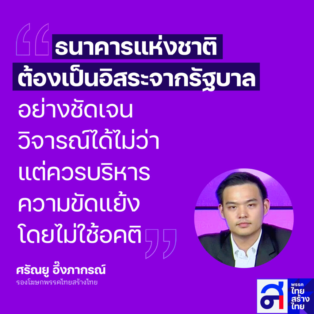 ทั้งนี้หากธนาคารแห่งประเทศไทยไม่ยอมให้ความร่วมมือ จะไม่สามารถลดเพดานหนี้ได้เลย” นั้น ทีมเศรษฐกิจพรรคไทยสร้างไทย ได้แสดงความกังวลและไม่เห็นด้วยต่อทัศนคติอันแปลกประหลาดโดยได้ออกมาต่อว่าถึงบทบาทของธนาคารแห่งประเทศไทยในการพัฒนาเศรษฐกิจของประเทศไทย