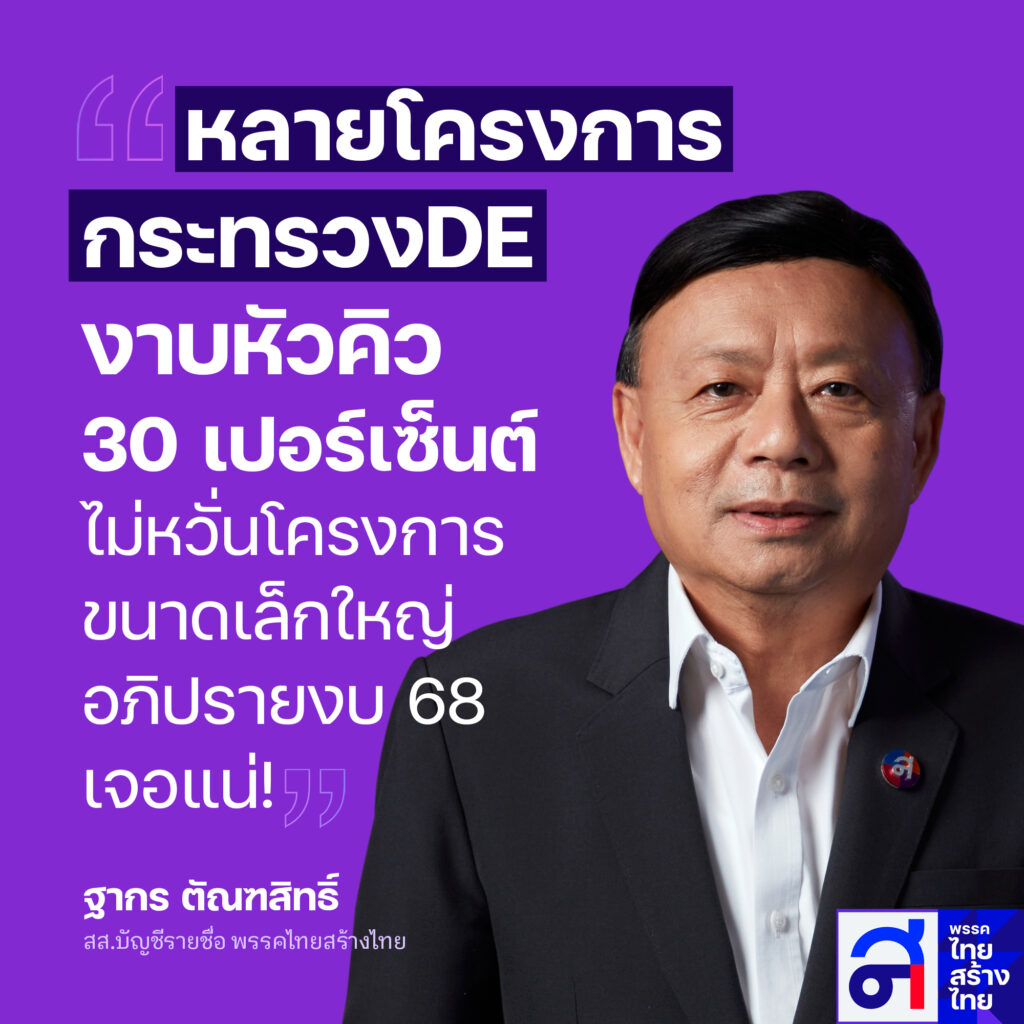 นายฐากร ตัณฑสิทธิ์ ส.ส.บัญชีรายชื่อ พรรคไทยสร้างไทย เปิดเผยว่า ศูนย์ปราบโกงพรรคไทยสร้างไทยได้รับข้อมูลจากประชาชนที่หวังดีต่อชาติบ้านเมือง กรณีความไม่ชอบพากลในการจัดประมูลจัดซื้อจัดจ้างโครงการต่างๆ ในหลายกระทรวง โดยเฉพาะกระทรวงดิจิทัลเพื่อเศรษฐกิจและสังคม (ดีอี) มีข้อมูลส่งมาเป็นจำนวนมาก โดยดีอีมีหน่วยงานที่อยู่ในสังกัด อาทิ กรมอุตุนิยมวิทยา สำนักงานสถิติแห่งชาติ สำนักงานพัฒนาธุรกรรมทางอิเล็กทรอนิกส์ กระทรวงได้รับงบประมาณปี 2567 เป็นจำนวน 5,347 ล้านบาท หน่วยงานที่ได้รับงบประมาณมากสุด ได้แก่ สำนักงานส่งเสริมเศรษฐกิจดิจิทัล จำนวน 1,586 ล้านบาท และกรมอุตุนิยมวิทยา จำนวน 1,348 ล้านบาท นอกจากนี้ยังมีรัฐวิสาหกิจอีก 2 แห่งที่ดีอีกำกับดูแล ได้แก่ บริษัทโทรคมนาคมแห่งชาติ (NT) มีรายได้ปีละกว่า 8 หมื่นล้านบาท บริษัทไปรษณีย์ไทยจำกัด เมื่อปีที่ผ่านมามีรายได้ 2 หมื่นล้านบาท