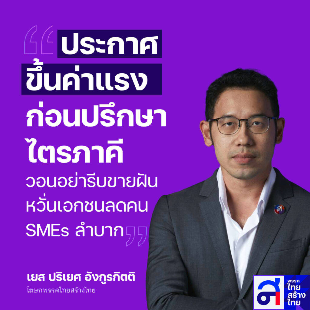 “ปริเยศ ไทยสร้างไทย” ชี้เกษตรกร SMEs ทรุดหนัก หลังรัฐประกาศขึ้นค่าแรงก่อนคุยกับไตรภาคี อัดห่วงแต่ขายฝันนโยบาย ผู้ประกอฟบการขนาดเล็ก หรือเกษตรกร ทิ้งภาระให้คนรากหญ้าแบกต้นทุนแพง ค่าใช้จ่ายพาเหรดพุ่งไม่หยุด ระบุ เศรษฐกิจจากนี้ทรุดเพิ่ม เอกชนลดคนงานแน่