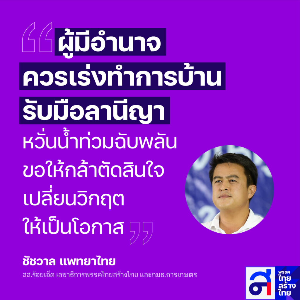นายชัชวาล แพทยาไทย เลขาธิการพรรคไทยสร้างไทย ในฐานะกรรมาธิการการเกษตรสภาผู้แทนราษฎร แสดงความกังวลถึงสถานการณ์อุทกภัยที่จะเกิดขึ้นในฤดูฝน อันเป็นผลมาจากปรากฏการณ์ลานีญา อาจทำให้ประเทศไทย