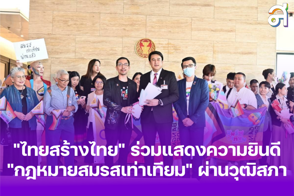 “ไทยสร้างไทย” ร่วมแสดงความยินดีกับ พี่น้องประชาชนผู้มีความหลากหลายทางเพศ หลัง “กฎหมายสมรสเท่าเทียม” ผ่านด่านวุฒิสภา ที่ลงมติเห็นชอบแล้ว ระบุเป็นหมุดหมายสำคัญในการสร้างความเท่าเทียม ให้เกิดขึ้นในสังคมไทย