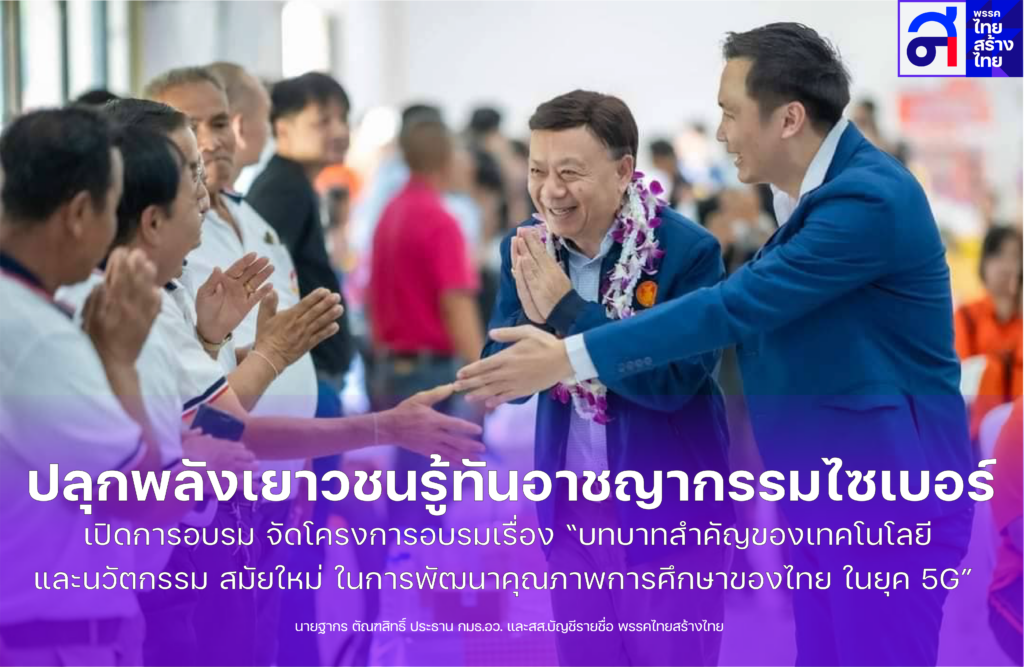 นายฐากร ตัณฑสิทธิ์ ประธาน กมธ.อว. และสส.บัญชีรายชื่อ พรรคไทยสร้างไทย เป็นประธานเปิดการอบรม จัดโครงการอบรมเรื่อง “บทบาทสำคัญของเทคโนโลยี และนวัตกรรม สมัยใหม่ ในการพัฒนาคุณภาพการศึกษาของไทย ในยุค 5G” แก่นักเรียนชั้นมัธยมศึกษาตอนปลาย จำนวนกว่า 500 คน โดยเชิญสำนักงานคณะกรรมการกิจการกระจายเสียง กิจการโทรทัศน์และกิจการโทรคมนาคมแห่งชาติ (กทสช.), บริษัท แอดวานซ์ อินโฟร์ เซอร์วิส จำกัด (มหาชน), บริษัท ทรู คอร์ปอเรชั่น จำกัด (มหาชน) และ บริษัท โทรคมนาคมแห่งชาติ (มหาชน) ร่วมพูดคุย