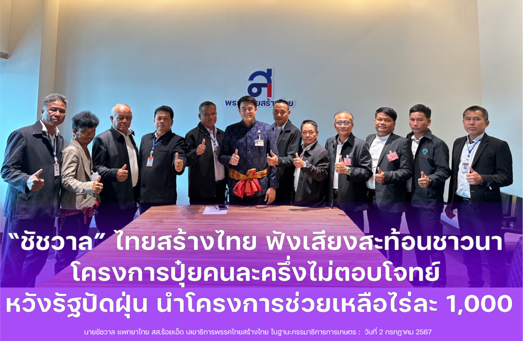 ชัชวาล ไทยสร้างไทย ฟังเสียงสะท้อนชาวนา บ่น โครงการปุ๋ยคนละครึ่งไม่ตอบโจทย์ หวังรัฐปัดฝุ่น นำโครงการช่วยเหลือไร่ละ 1,000 กลับมาใช้ จี้ผู้มีอำนาจเร่งทบทวน ก่อนเริ่มฤดูกาลผลิตใหม่ที่ใกล้มาถึง