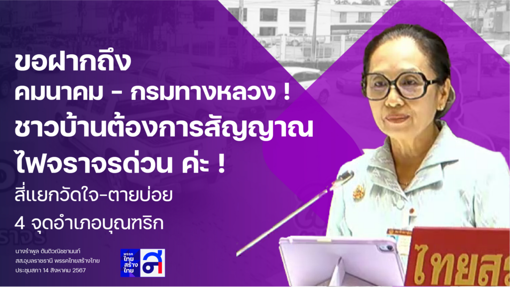 สส.รำพูล ฝากถึง คมนาคม – กรมทางหลวง ขอสัญญาณไฟจราจร แก้ปัญหา 4 แยก อันตราย อ.บุณฑริก
