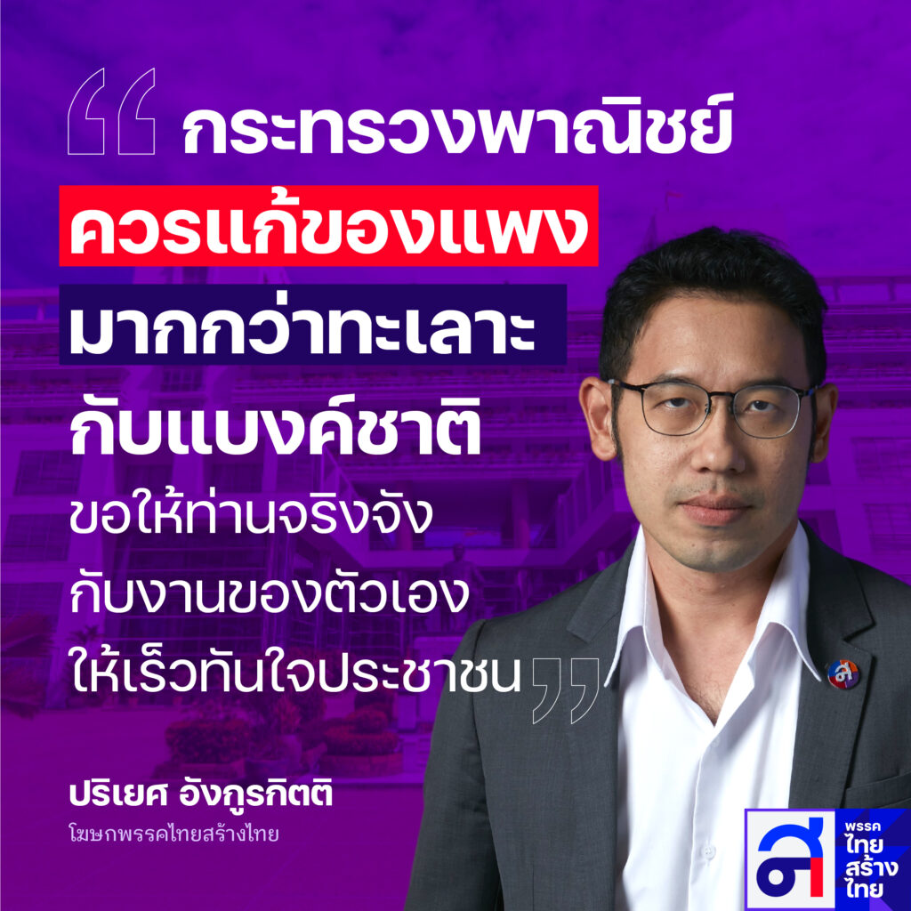 โฆษกไทยสร้างไทย จี้พาณิชย์ แก้ของแพงพื้นที่น้ำท่วม ชี้ควรเลิกทะเลาะแบงค์ชาติ หันมาจริงจังงานตัวเอง กระตุ้น คอส. ควรทำงานให้รวดเร็วทันภาคประชาชน