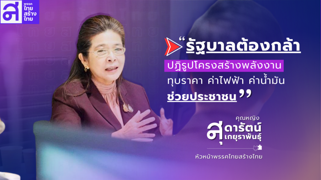“สุดารัตน์” ประกาศจับตารัฐบาล กล้าปฏิรูปโครงสร้างพลังงานทุบราคาค่าไฟฟ้า ค่าน้ำมันช่วยประชาชนจริงหรือไม่ จี้หามาตรการ “เพิ่มรายได้” สร้างแต้มต่อให้กับผู้ประกอบการขนาดกลางขนาดย่อม พร้อมหนุนการสร้างแรงงานทักษะสูง รับการลงทุนของโลกยุคเมกะเทรนด์