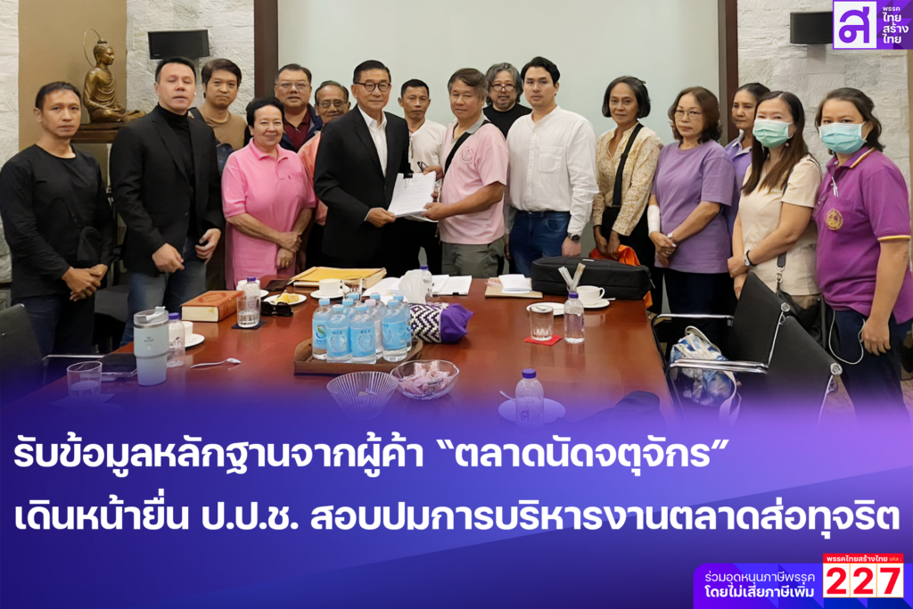 พรรคไทยสร้างไทย เดินหน้าช่วยเหลือผู้ค้าตลาดนัดสวนจตุจักรอย่างต่อเนื่อง หลังจากที่คุณหญิงสุดารัตน์ เกยุราพันธุ์ หัวหน้าพรรค ลงพื้นที่รับฟังปัญหาผู้ค้าเมื่อต้นเดือนที่ผ่านมา ล่าสุดตัวแทนผู้ค้าได้เข้ายื่นข้อมูลและพยานหลักฐานเพิ่มเติมต่อพรรค เพื่อขอให้ตรวจสอบความไม่โปร่งใสในการบริหารจัดการตลาดนัดสวนจตุจักร พร้อมเตรียมยื่นเรื่องต่อคณะกรรมการป้องกันและปราบปรามการทุจริตแห่งชาติ (ป.ป.ช.) ในวันที่ 18 กุมภาพันธ์ 2568