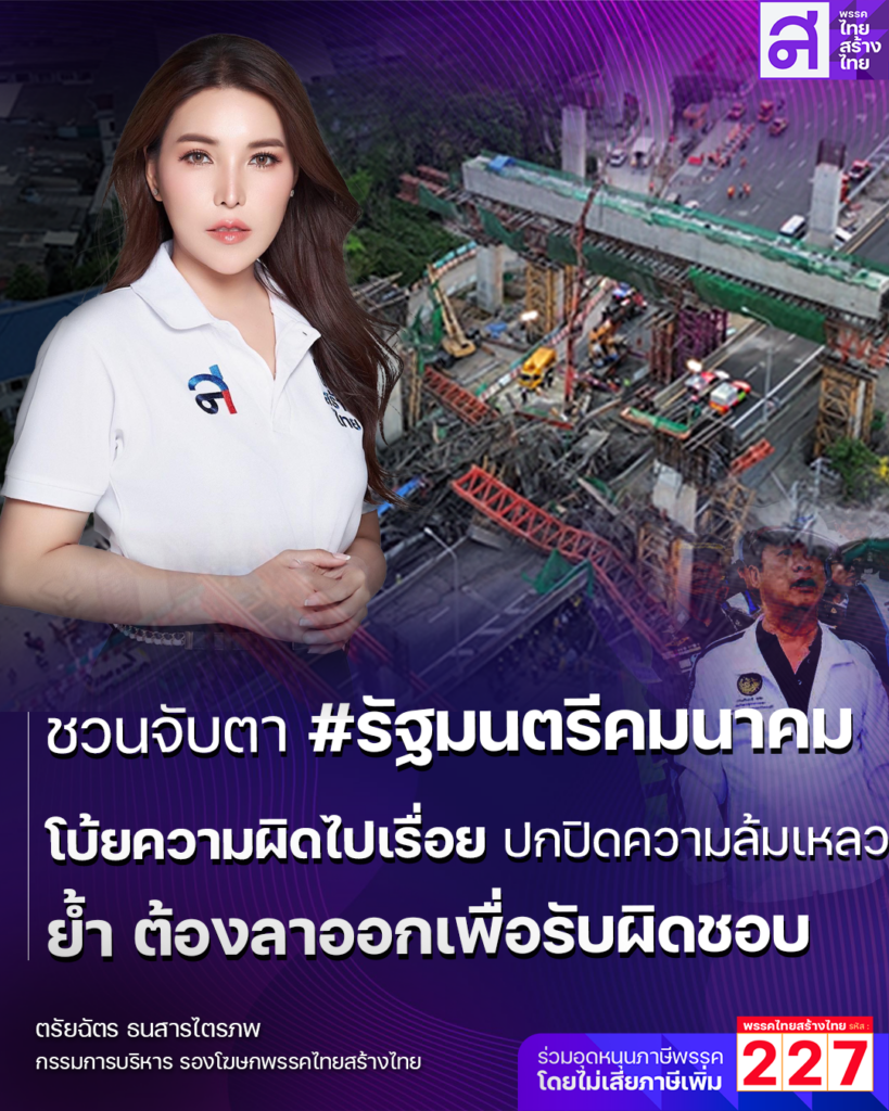 นางสาวตรัยฉัตร ธนสารไตรภพ กรรมการบริหารและรองโฆษกพรรคไทยสร้างไทย ออกโรงจวก นายสุริยะ จึงรุ่งเรืองกิจ #รัฐมนตรีว่าการกระทรวงคมนาคม กรณีให้สัมภาษณ์เกี่ยวกับมาตรการ “สมุดพกผู้รับเหมา” ซึ่งยังไม่สามารถบังคับใช้ได้ แม้เกิดอุบัติเหตุซ้ำซากจากโครงการก่อสร้างบนถนนพระราม 2