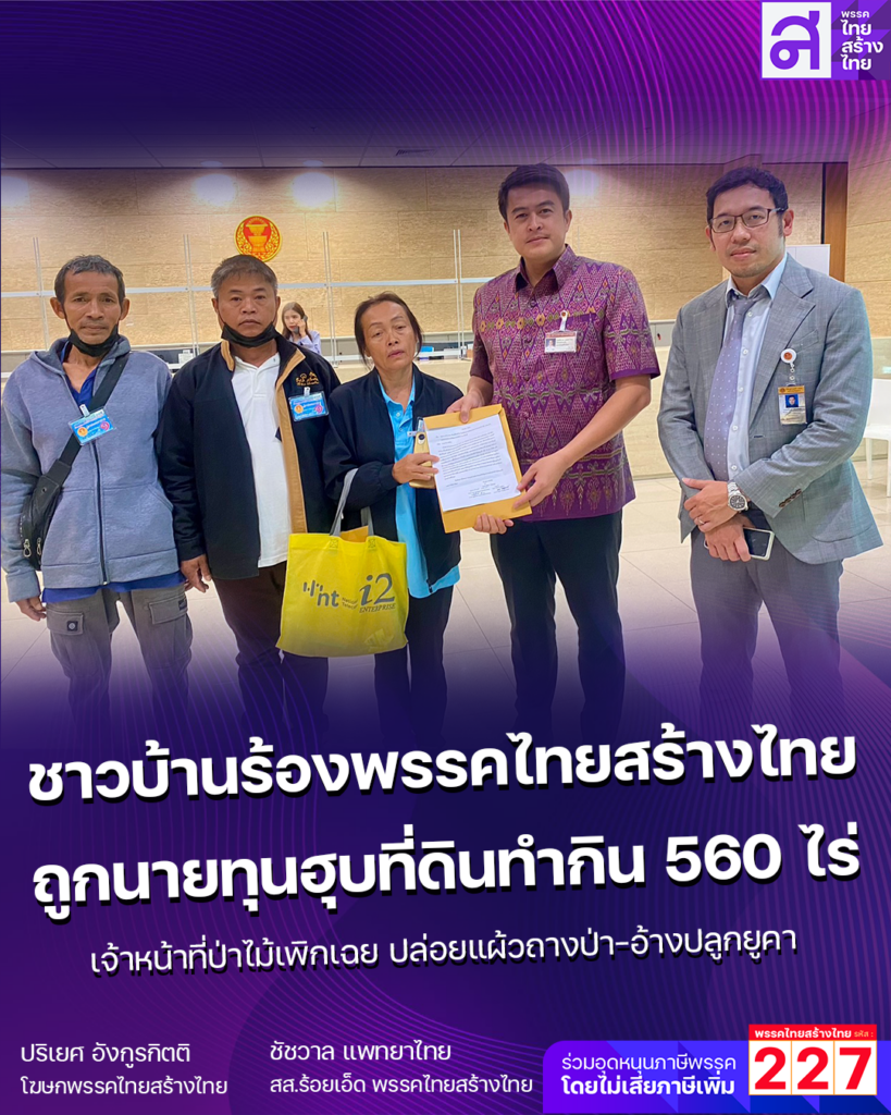 20 มีนาคม 2568 ที่รัฐสภา ตัวแทนชาวบ้านจากหมู่ 3, 4 และ 7 บ้านเขาสารภี ตำบลทับพริก อำเภออรัญประเทศ จังหวัดสระแก้ว รวมกว่า 120 ครัวเรือน ได้เข้ายื่นหนังสือร้องเรียนต่อพรรคไทยสร้างไทย ผ่าน นายชัชวาล แพทยาไทย สมาชิกสภาผู้แทนราษฎรจังหวัดร้อยเอ็ด และนายปริเยศ อังกูรกิตติ เพื่อขอความเป็นธรรมกรณีที่ดินทำกินถูกนายทุนบุกรุก ขณะที่เจ้าหน้าที่ป่าไม้กลับเพิกเฉย ไม่ดำเนินการช่วยเหลือ