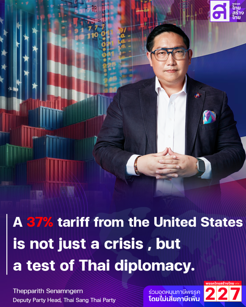 The recent announcement by the United States government to impose a 37% tariff on Thai exports has sent shockwaves through Thailand’s business community, especially our small and medium-sized enterprises (SMEs), farmers, and labor-dependent industries. While I commend the government’s decision to send a high-level delegation to Washington D.C. led by the Finance Minister, I must express deep concern that this response—however well-intentioned—is reactive, not strategic.