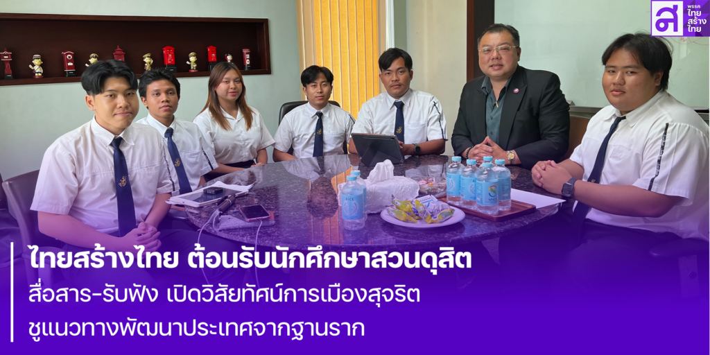 ดร.ณรงค์ รุ่งธนวงศ์ ผู้อำนวยการพรรคไทยสร้างไทย ให้การต้อนรับอย่างอบอุ่นแก่คณะนักศึกษาจากมหาวิทยาลัยสวนดุสิต โรงเรียนกฎหมายและการเมือง หลักสูตรรัฐศาสตรบัณฑิต ที่ได้เดินทางมาเยี่ยมชมและศึกษาดูงานเกี่ยวกับบทบาทและการดำเนินกิจกรรมของพรรคการเมือง ณ ที่ทำการพรรคไทยสร้างไทย โดยบรรยากาศเป็นไปอย่างเป็นกันเองซึ่งกลุ่มนักศึกษาให้ความสนใจในนโยบายและแนวทางของพรรคเป็นอย่างมาก