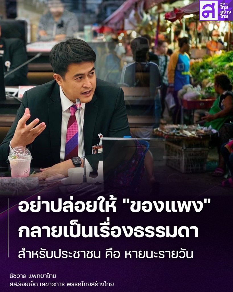 นายชัชวาล แพทยาไทย สส.ร้อยเอ็ด พรรคไทยสร้างไทย เผยว่า ขณะนี้ประเทศไทยเข้าสู่ยุคของแพงเต็มรูปแบบ โดยเฉพาะกลุ่มสินค้าอุปโภคบริโภคจำเป็นที่ประชาชนใช้ในชีวิตประจำวัน ทั้งเนื้อหมู ไข่ ผัก และเครื่องปรุงอาหาร ล้วนปรับราคาสูงขึ้นอย่างต่อเนื่อง ขณะที่ข้าวแกงบางแห่งขยับราคาจาก 30 บาทเป็น 35-45 บาท ทำให้ภาระค่าครองชีพของประชาชนเพิ่มขึ้นอย่างชัดเจน